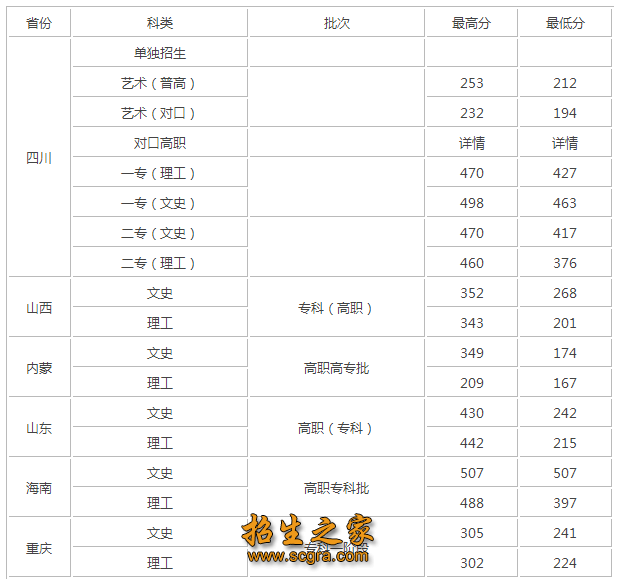 2、我院在四川省实行跨批次录取(即分别在专科一批和专科二批两个批次投放专业计划),其它省(市、区)则按当地教育考试院或省级招办的安排参加相应批次的录取。