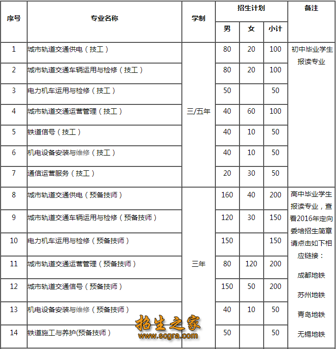 3、身高:城市轨道交通运营管理、电力机车运用与检修专业:男生170cm及以上,女生160cm及以上;其他专业:男生165cm及以上,女生155cm及以上。