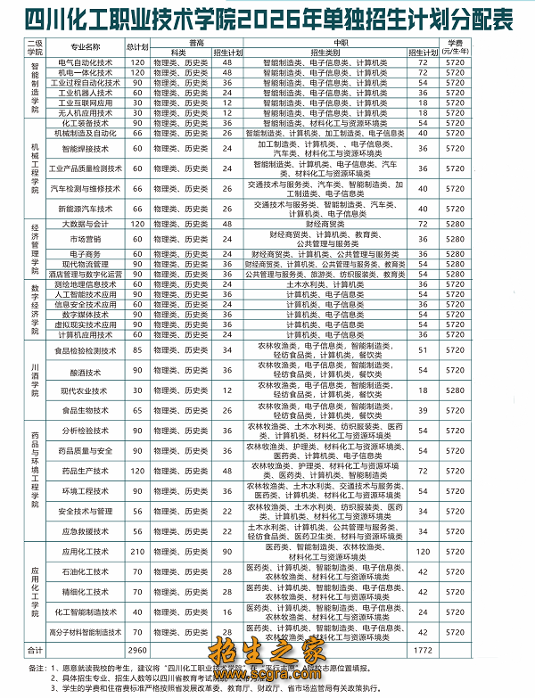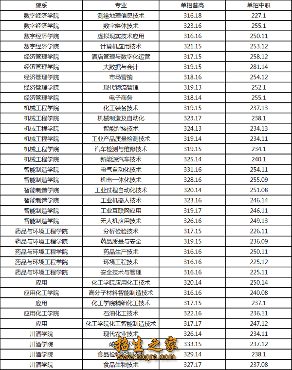 【公办】四川化工职业技术学院2026年单招招生计划(附2025年单招各专业分数线)